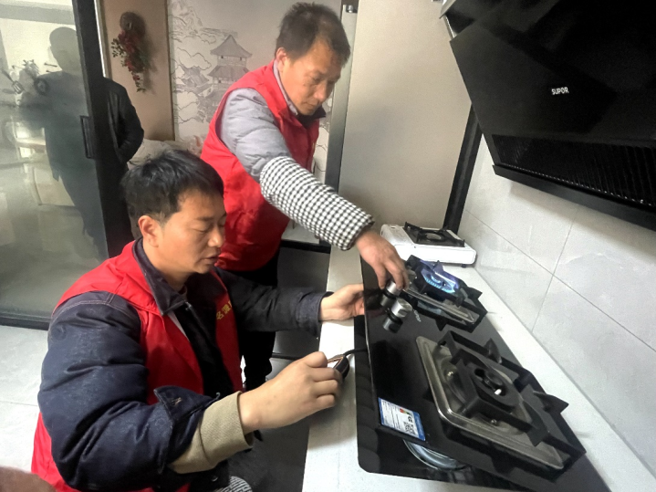 据了解,“安心用气工程”是由建设部门主导开展的一项民生工程,旨在加强居民燃气使用安全,排除潜在的安全隐患。从2月26日开始,由燃气公司工作人员、灶具供应商安装人员组成的专业小队进入到三保村拉开在该进行的“安心用气工程”入户建设的工作。为方便建设工作人员顺利地逐户上门开展工作,三保村网格工作站充分发挥网格员人头熟悉的优势,安排网格员与建设人员一道进入网格,配合做好“安心用气工程”的宣传工作,助力加速推进民生工程顺利落地到村中老百姓的厨房中,把安全用气的知识送入到村民们的心中。